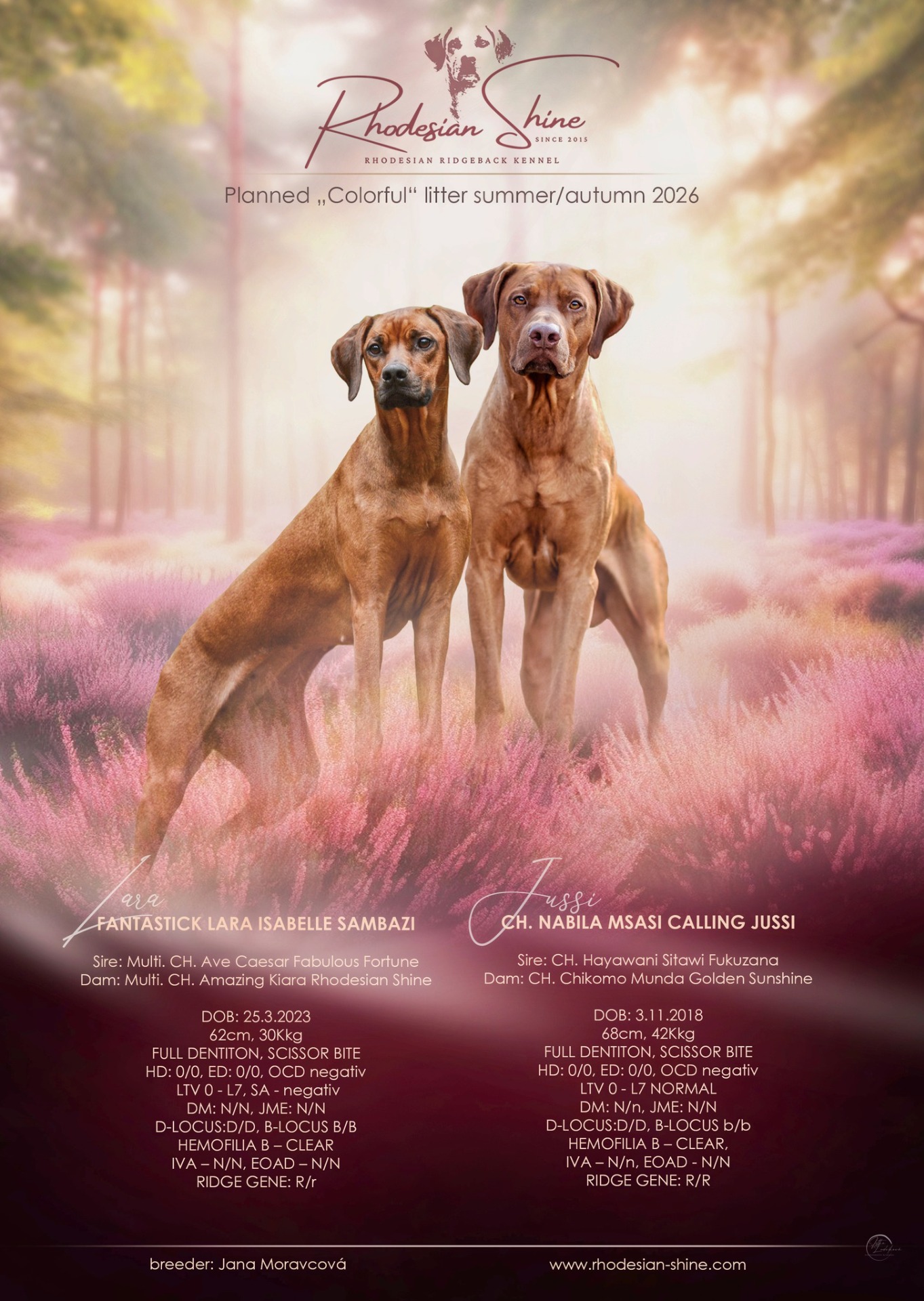 - zviditelnění vrhu v FB skupině Rhodéský Ridgeback - celá ČR (příspěvek + story bude uveřejněn min. 2x) Každá jednotlivá propagace je uveřejněna po dobu jednoho týdne!